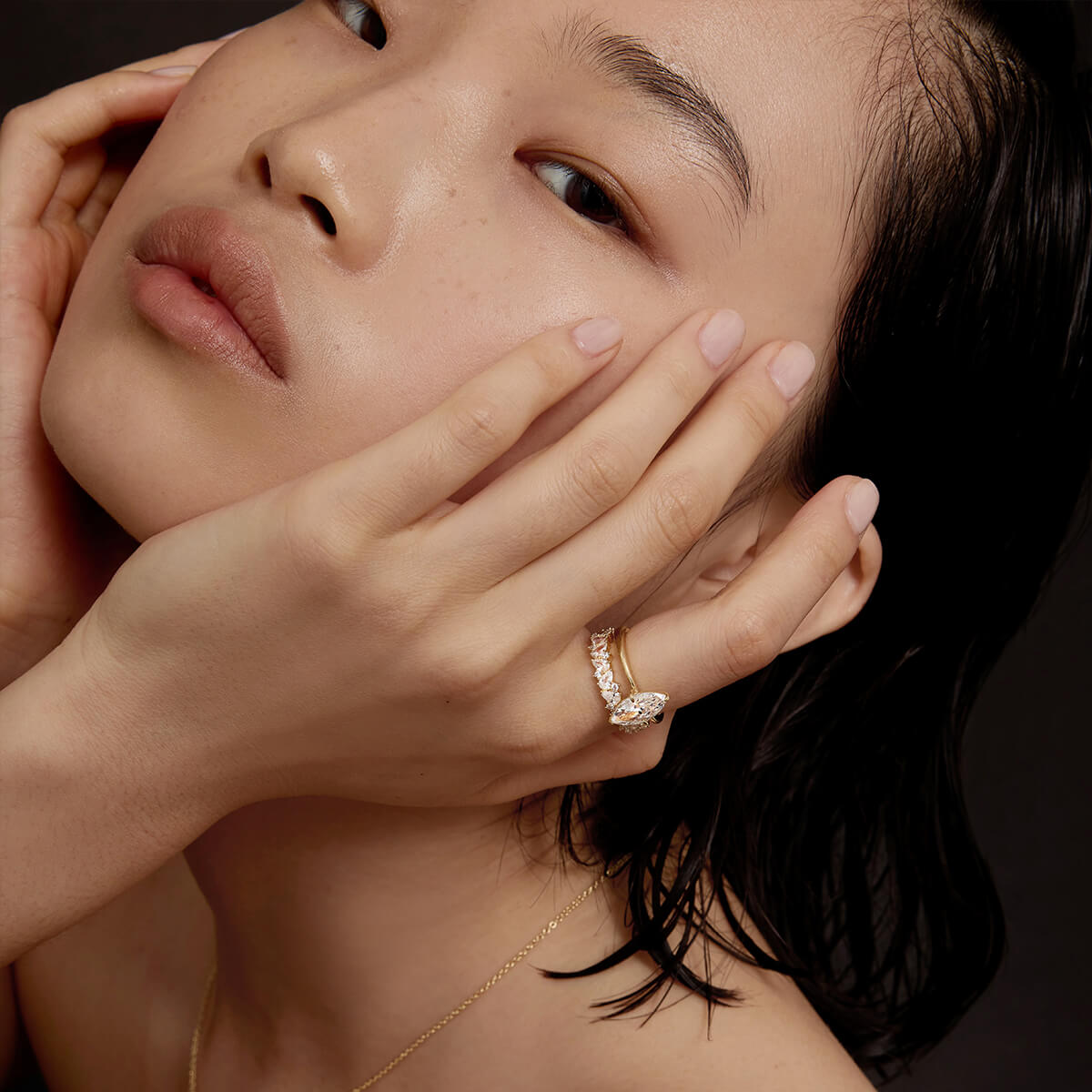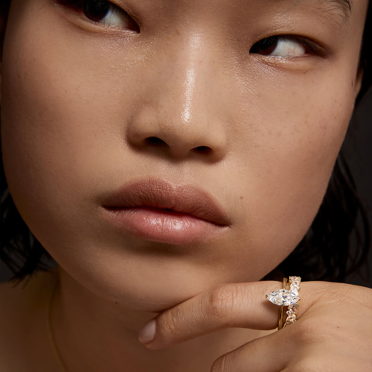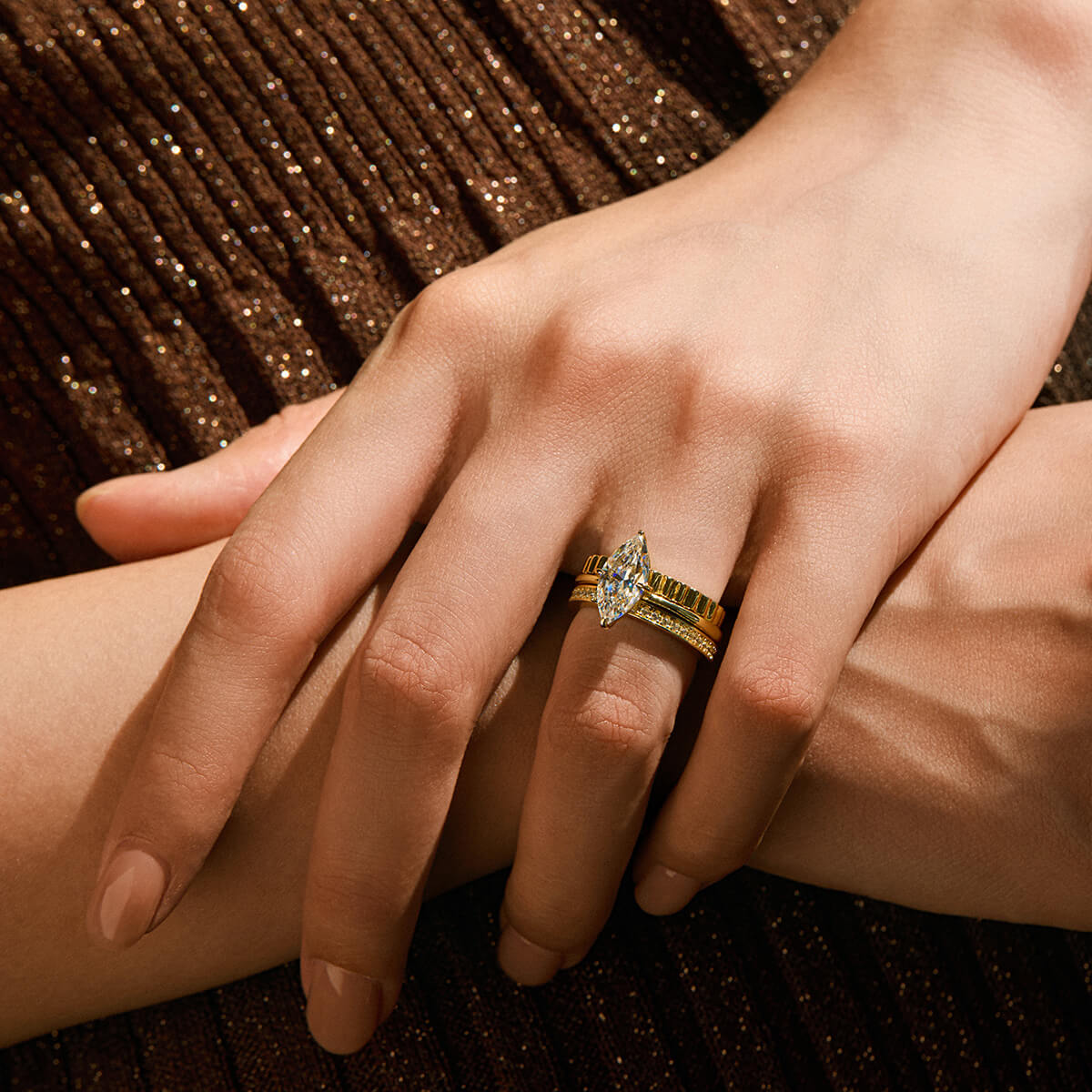 The Feu Ring is the perfect accessory to add a touch of elegance to any occasion. Crafted with a marquise-cut stone set in a simple yet sophisticated band, it provides a timeless and stylish look. An exclusive piece for the modern woman.