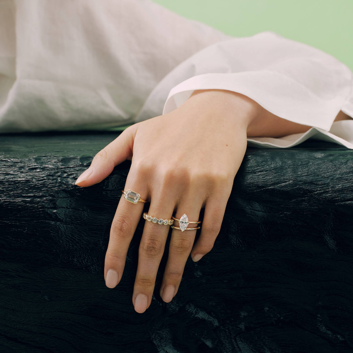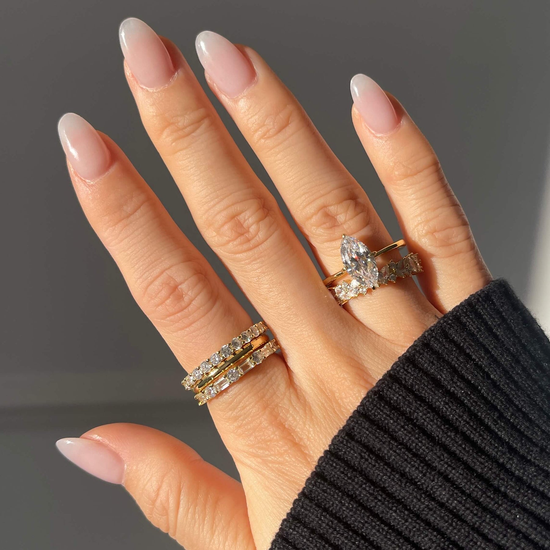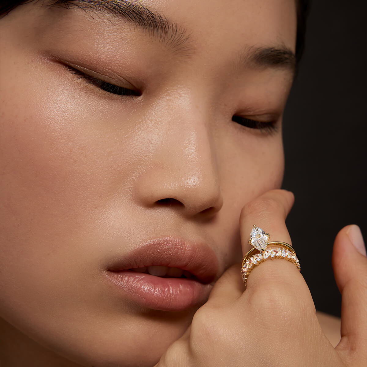 The Feu Ring is the perfect accessory to add a touch of elegance to any occasion. Crafted with a marquise-cut stone set in a simple yet sophisticated band, it provides a timeless and stylish look. An exclusive piece for the modern woman.