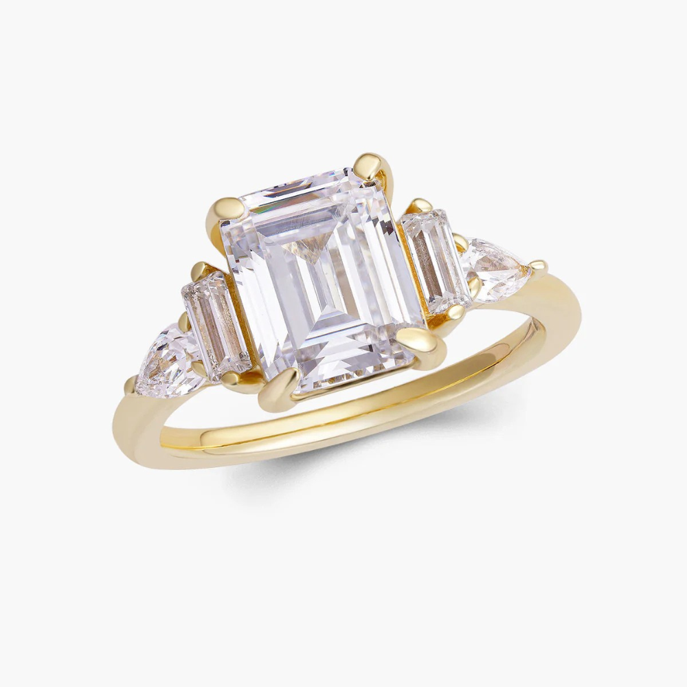 Discover the breathtaking beauty of the Alaina Ring! With its stunning emerald cut centre piece, framed by a flashing array of additional stones, this ring exudes elegance and sophistication. A perfect choice for those who appreciate timeless and classic jewelry. Make a statement with the Alaina Ring!